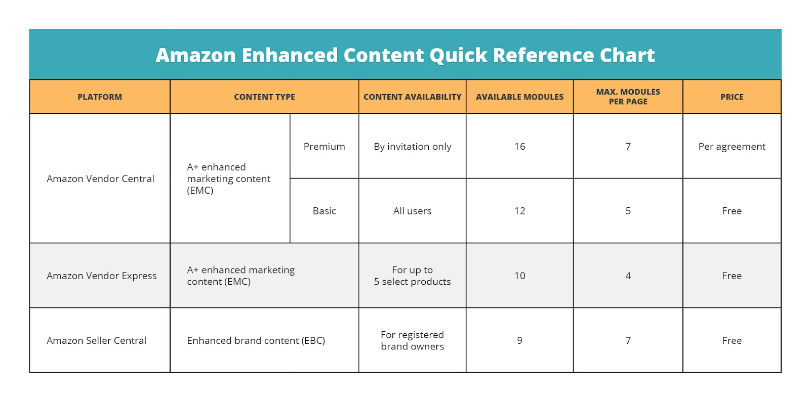Understanding the differences between the various types of Amazon-enhanced content can be confusing. Here’s a quick reference chart for easy comparison: