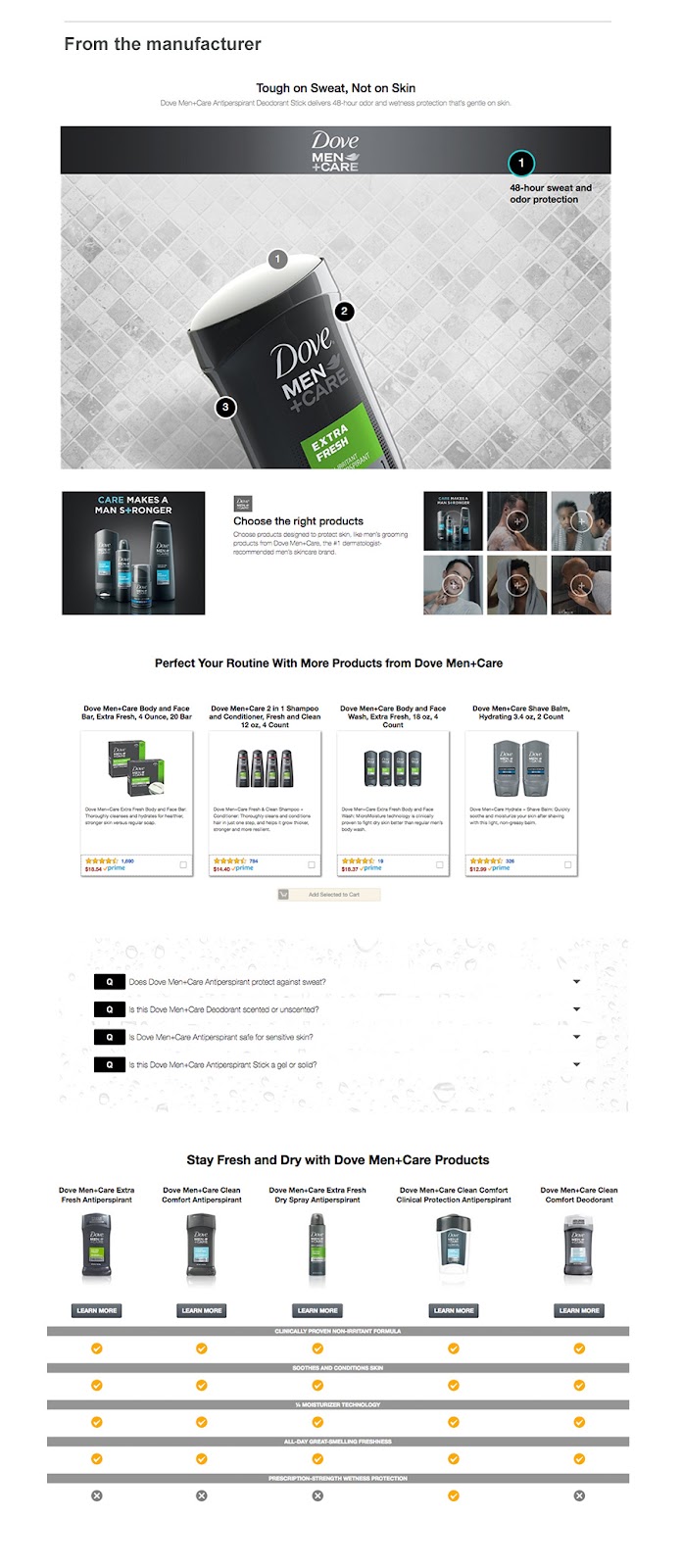 A+ enhanced marketing content (EMC) helps first-party vendors strengthen their product detail pages with additional copy, images, videos, and charts. This content appears under the “From the manufacturer” heading on product pages: