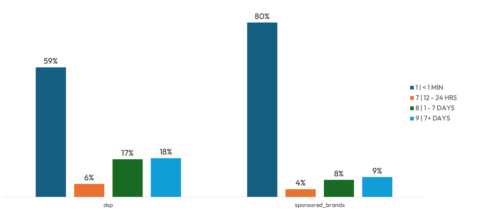 (2) Time to conversion - advertisers can review how long after a click or view before a customer purchases. Based on this data, retargeting strategy optimizations can be implemented to reduce the time (and potential blockers) between view and purchase.