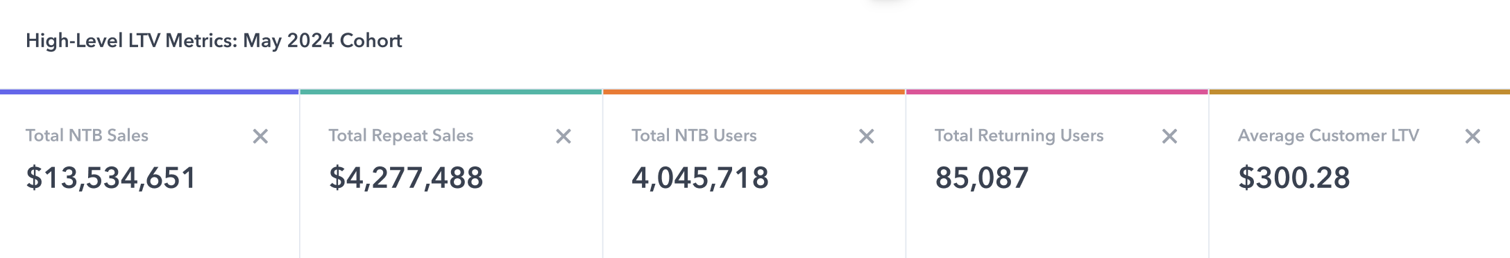 Looking at the LTV of these high NTB ASINs provides insight into if the product(s) bringing in the most NTB purchasers are also driving loyalty/long-term value.