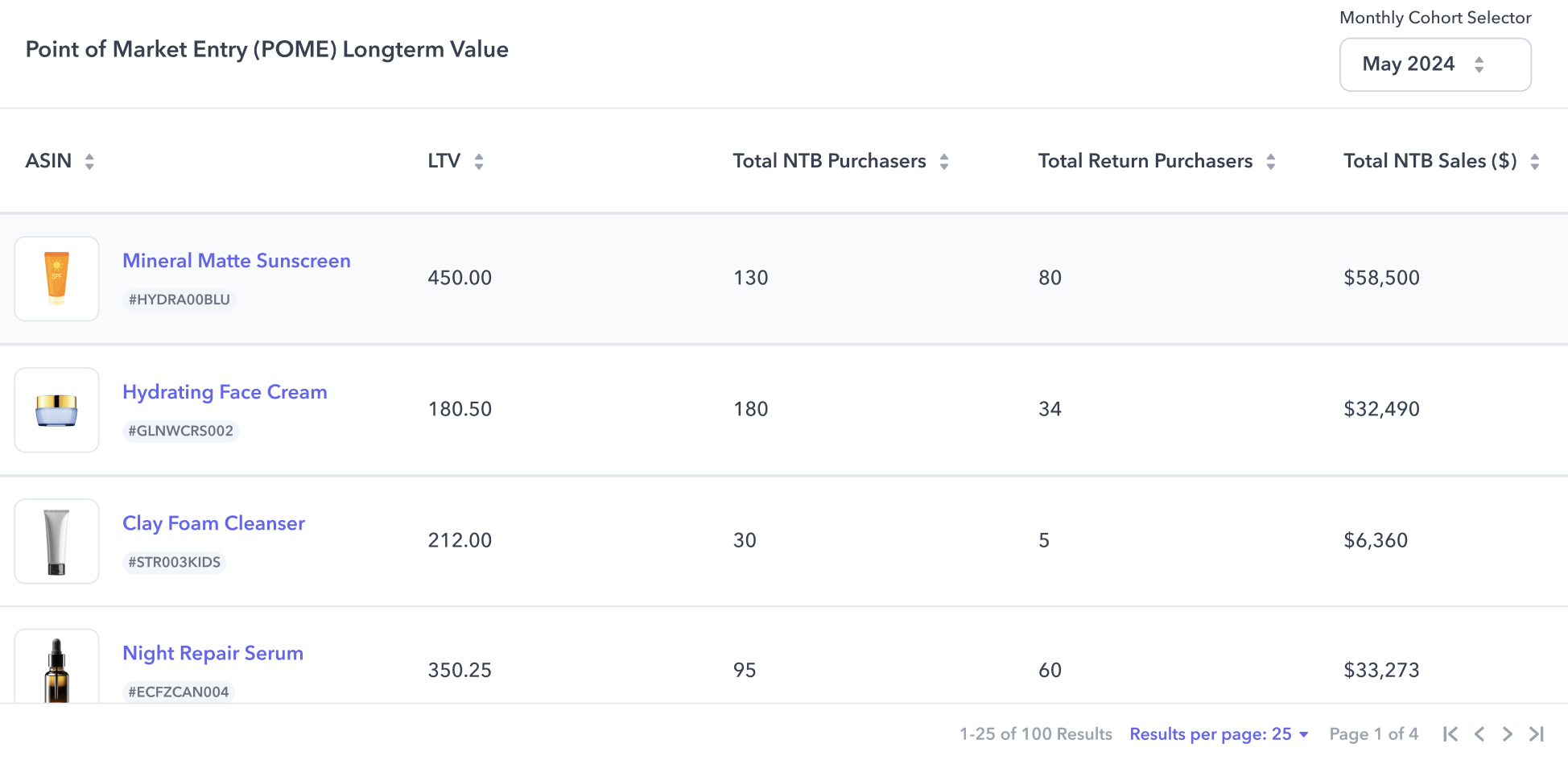 Looking at number of repurchases isn’t always enough. It’s also valuable to look at what ASINs they’re buying. In the POME Long-Term Value Report: