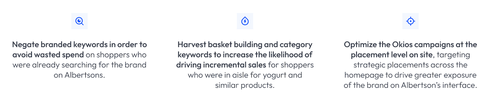 Oikos, a leading Greek yogurt brand from Danone, teamed up with Flywheel to improve their growth on Albertson’s after transitioning to the Criteo platform. The brand sought a more in-depth analysis of their campaigns, looking beyond the standard ROAS metric. Flywheel’s partnership with Criteo allowed Oikos early access to a new KPI Lift reporting dashboard, which combined with a comprehensive media strategy and Flywheel’s proprietary tech, helped drive the KPIs the brand was looking to improve.