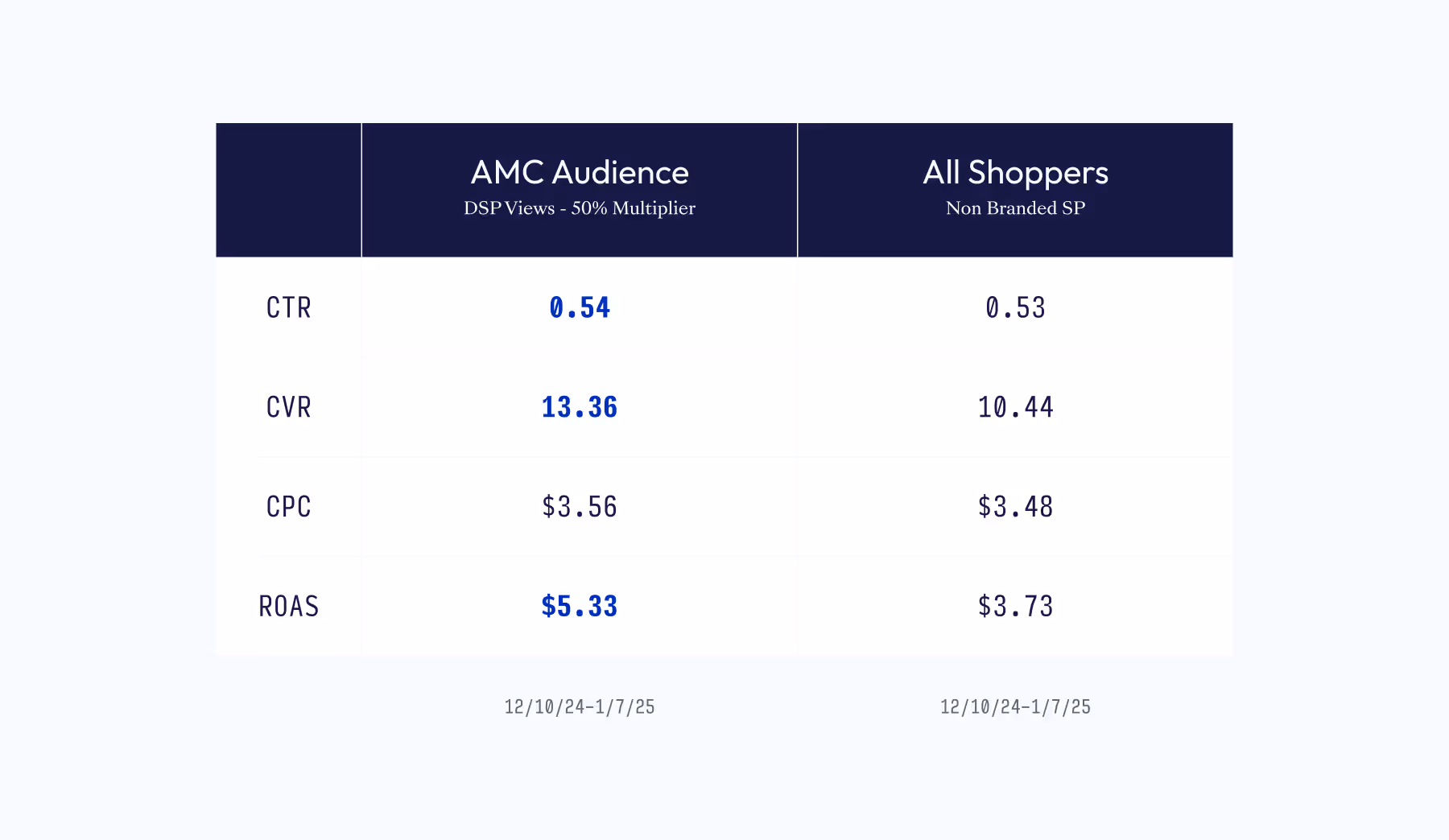 The results: Stronger ROAS and CTR for AMC Audiences for Sponsored Ads