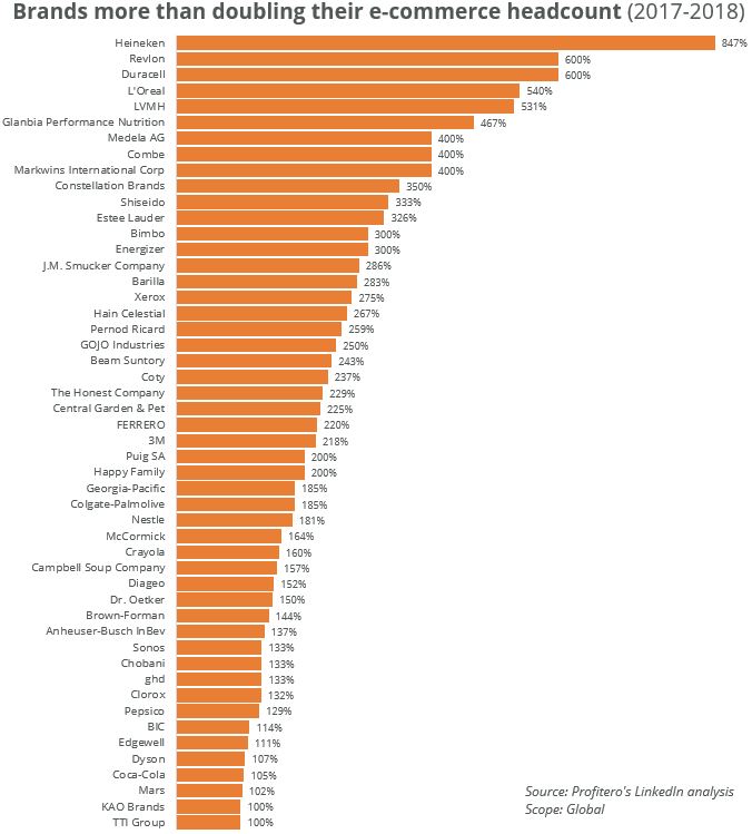 Until recently, CPG brands typically left e-commerce teams under-resourced with existing staff. This proved to be no longer sustainable, and investments are now being funneled into adding dedicated specialists to accelerate online growth. Not only do your e-commerce teams need to be organized for success, they need to have the right mix of analytical skills and a culture of continuous testing that is required to execute winning online strategies. This need for the “right” mix of people has many CPG brands increasing e-commerce head counts yearly at a staggering pace.